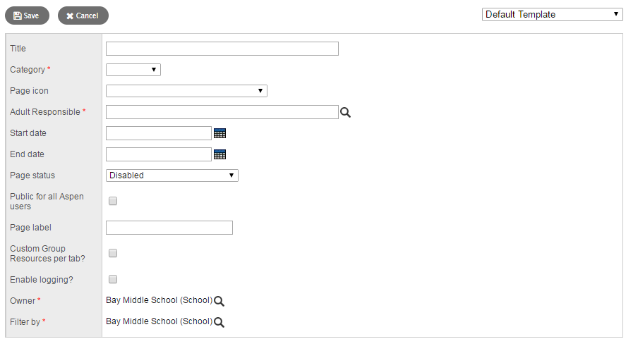 • This field is important for Pages that are administered by students.