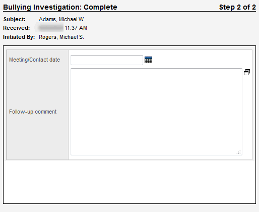 - In the Follow-up comment field, type any feedback or concerns given by the parents about the investigation.