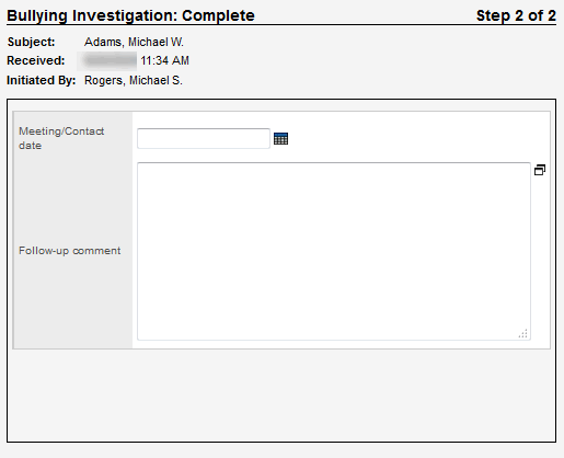 Note: The workflow does not send any type of notification to parents. This step is used only to document that you have called or met with the parents of both students.
