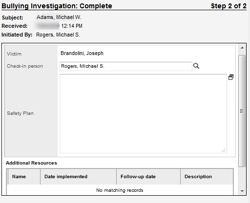 - In the Safety Plan field, the safety plan you created to restore the victim's safety appears. You can add additional information to the plan if necessary.