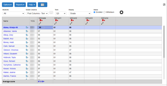 1. When you are done entering grades for the class, go to the Options menu and select Post Grades.