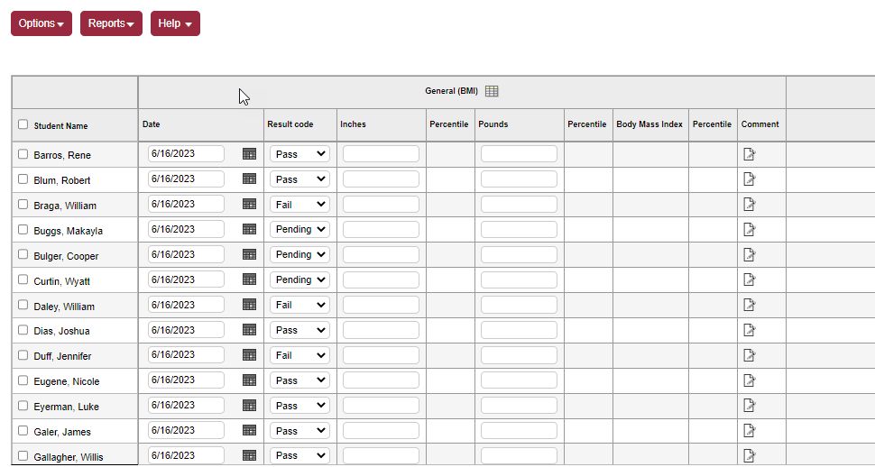- From the Options menu, click Delete. The student's name remains, with the screening data removed.