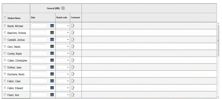 You can record a screening for a group of students at one time. Record screenings by group type, such as homeroom, section, or grade level.
