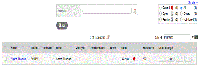 1. To view the details for a particular visit, click the student’s name in the appropriate row.