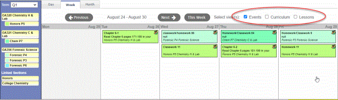 Use the Events view on your Planner to plan and create assignments by day, week, or month: