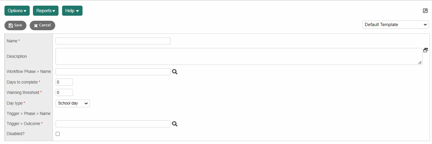 Click Search icon. to select the actual outcome that triggers the rule to be in effect. For example, the days countdown might not begin until the outcome for the trigger phase is Complete.