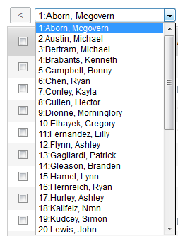 At the top of the Student List, the first student on the current page appears in a drop-down list in the page control. Use this list to quickly view the students included on the current page.